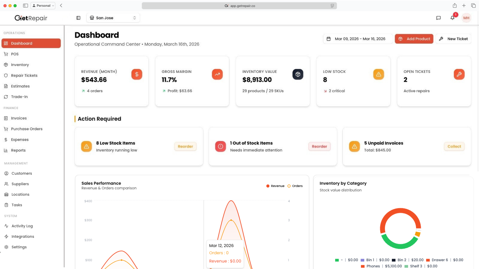 Stock and repair statuses move automatically. See what's happening the second it happens.